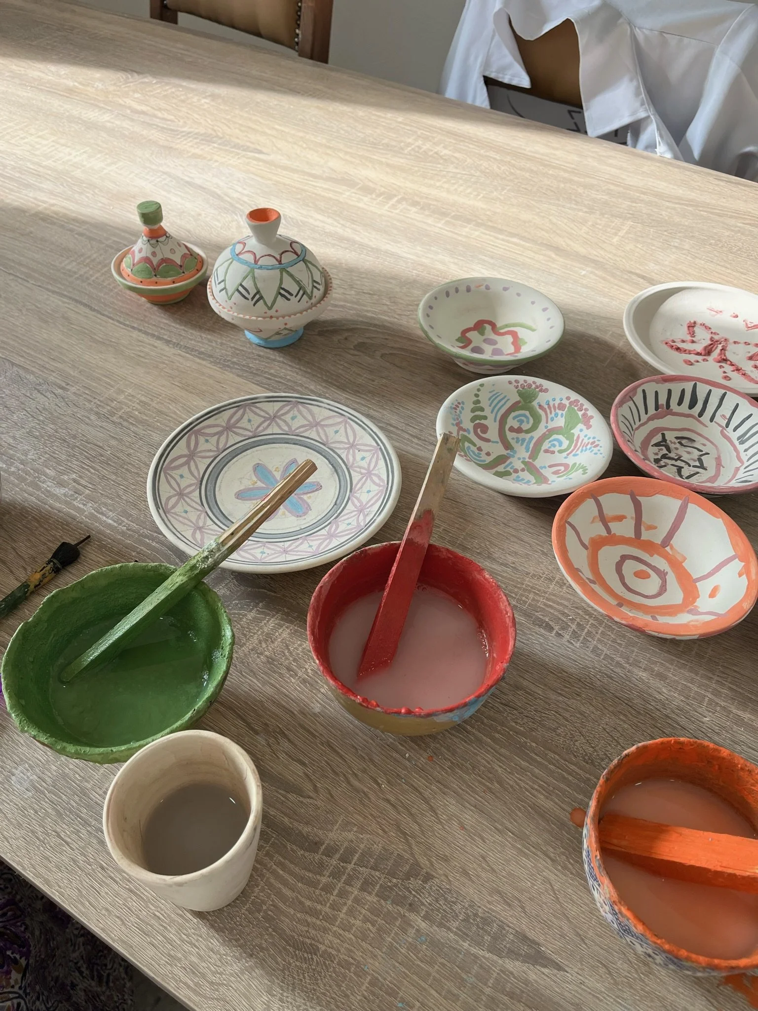 Before heading to our next stop, we spent the morning at a pottery class. We both attempted (me particularly badly) spinning the pottery wheel to create our masterpieces, which were predictably not good enough to even make the kiln. So instead we selected pre-made pieces and set about painting them in our own designs. This was much harder than it looked. We also learnt how to make a mosaic tile, placing the pieces and filling it with cement to create the world’s thickest coaster.