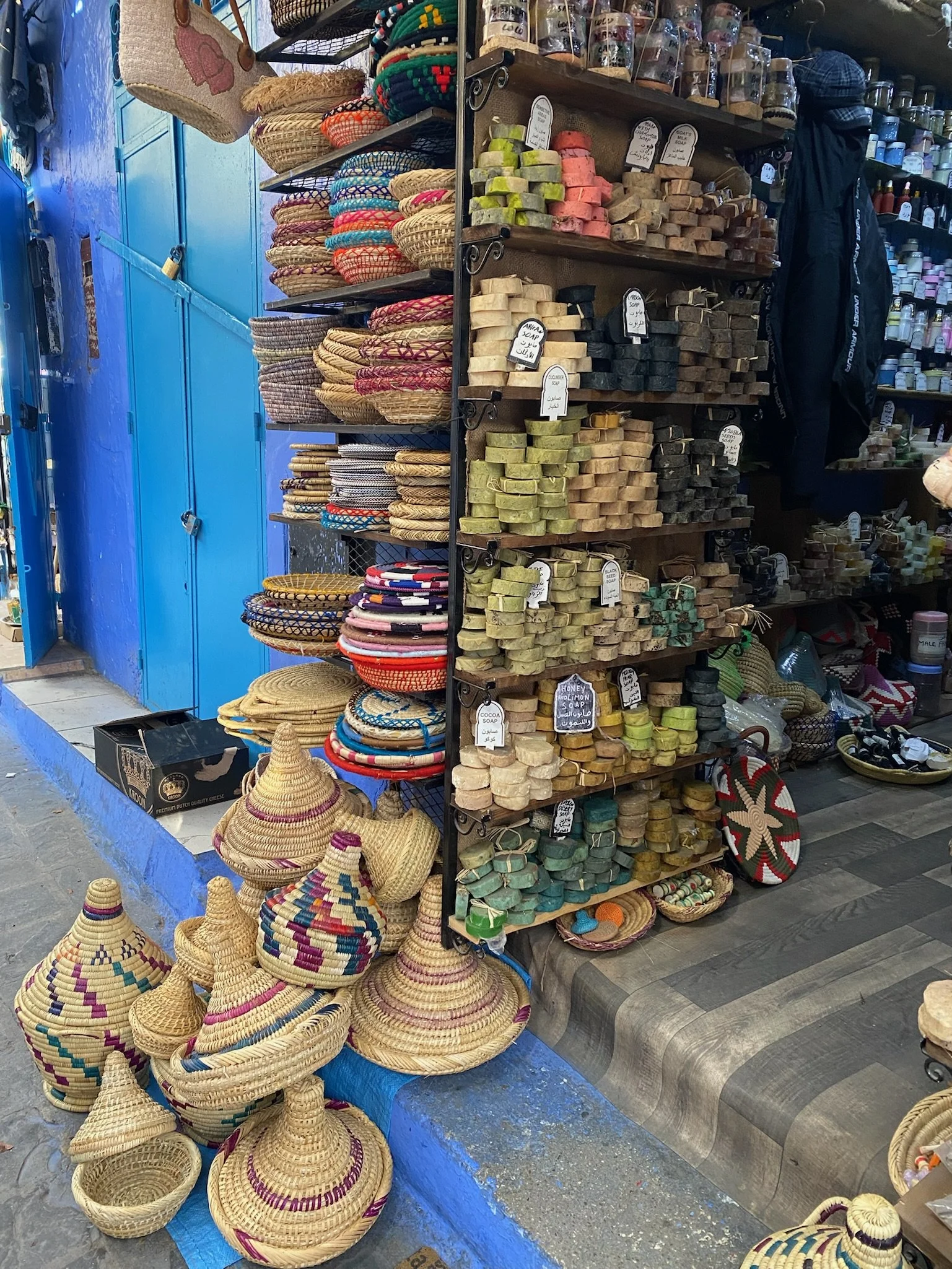 For our next full day in Chefchaouen, we explored the city with a local guide who took us to all the ‘insta worthy’ spots. I was worried it would feel touristy but I couldn’t have been more wrong. It felt largely untouched by tourism, and we saw plenty of local women selling oil and olives who had travelled down from the Rif mountains to sell their produce. It was so interesting seeing modern elements of life intertwined with such ancient practices. Our shopping flurry continued as we bought rugs (yes plural), shoes, trinkets and ceramics.