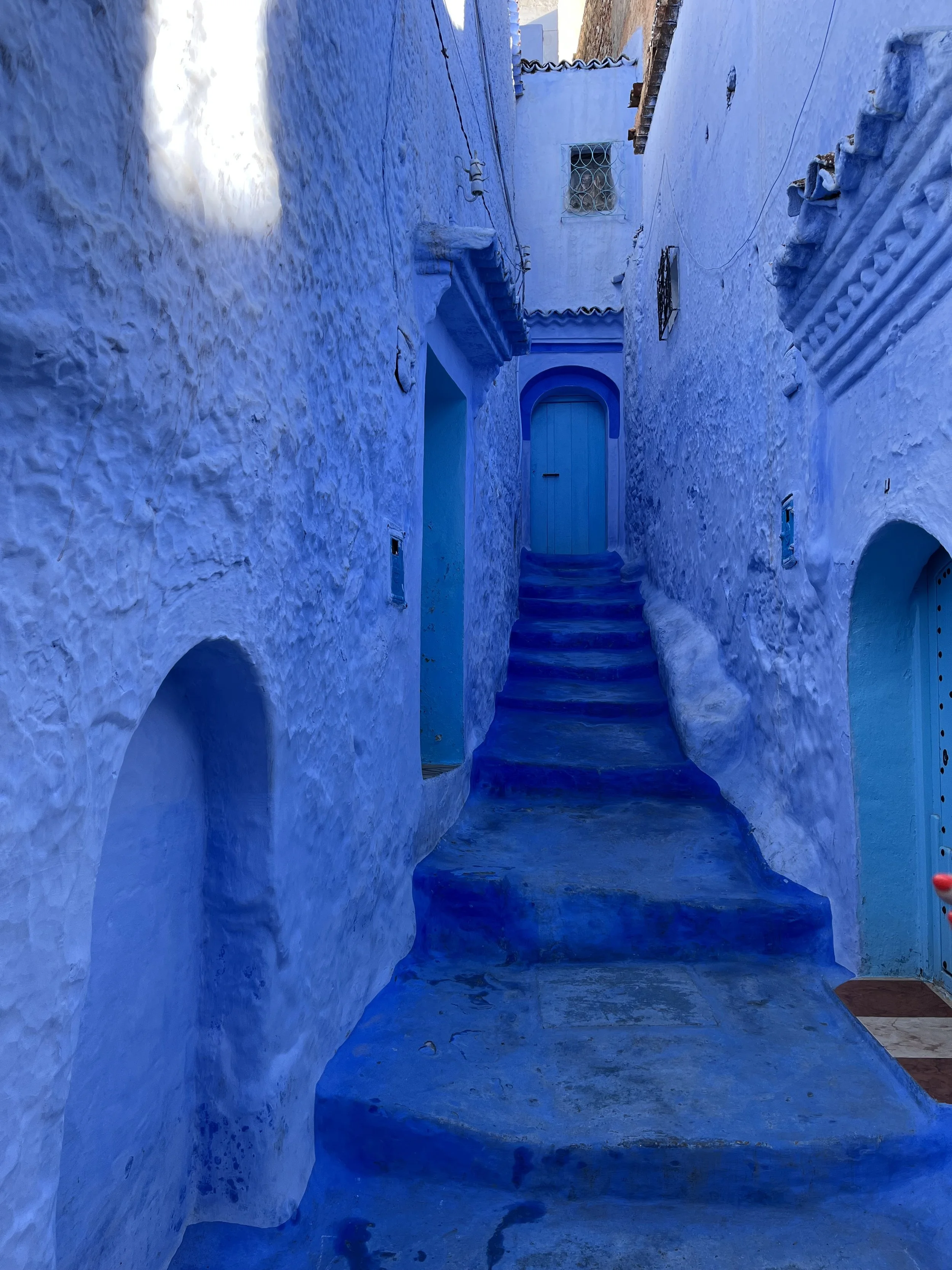 After our pottery masterclass we embarked on our journey to Chefchaouen, known for its striking blue washed buildings and cobbled medina. Originally the blue was made from indigo flowers, but today, to keep the custom alive, residents are offered incentives for painting their houses blue and the history of the town continues. We stayed at Dar Jasmine, known for its exceptional views over the city. The price for the views was a steep ascension of around 100 stairs to the hotel.
